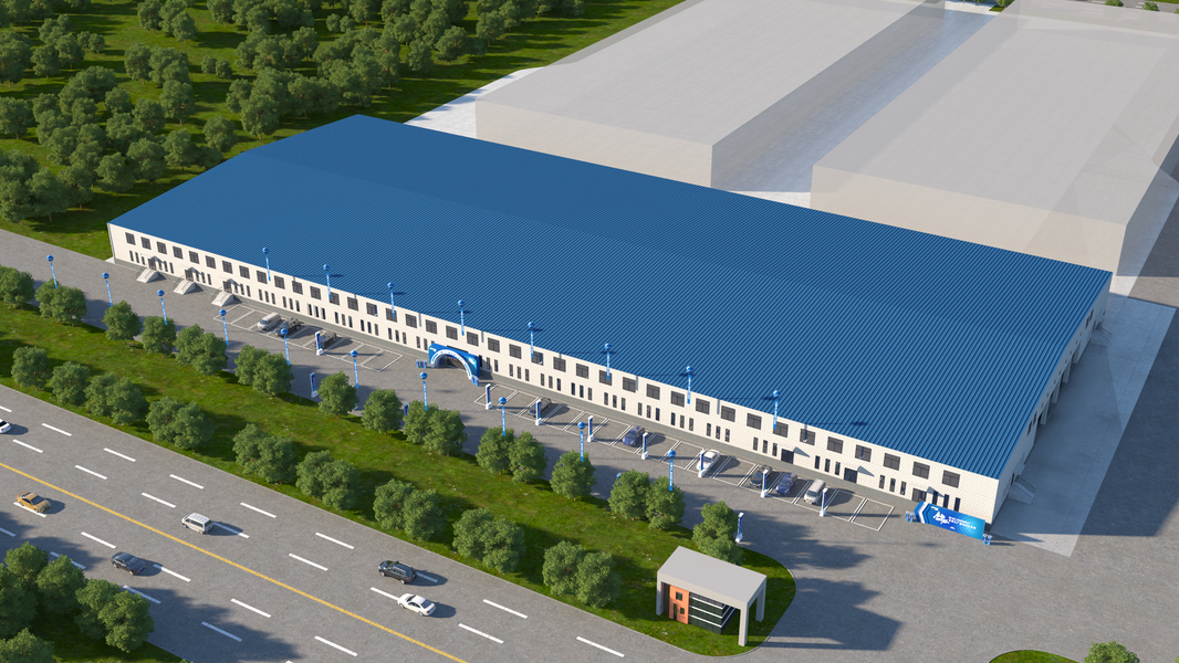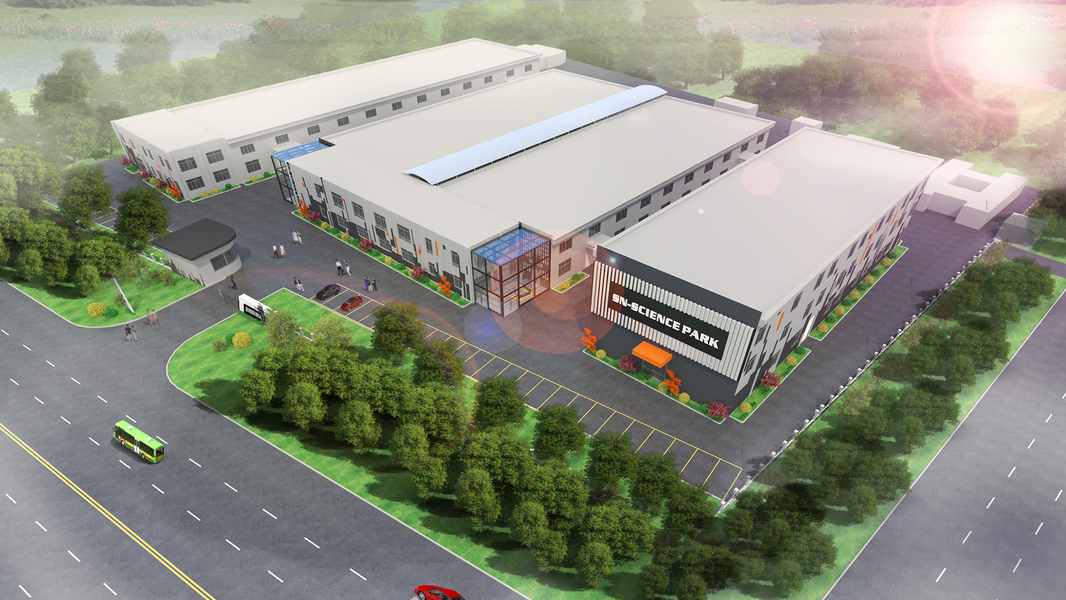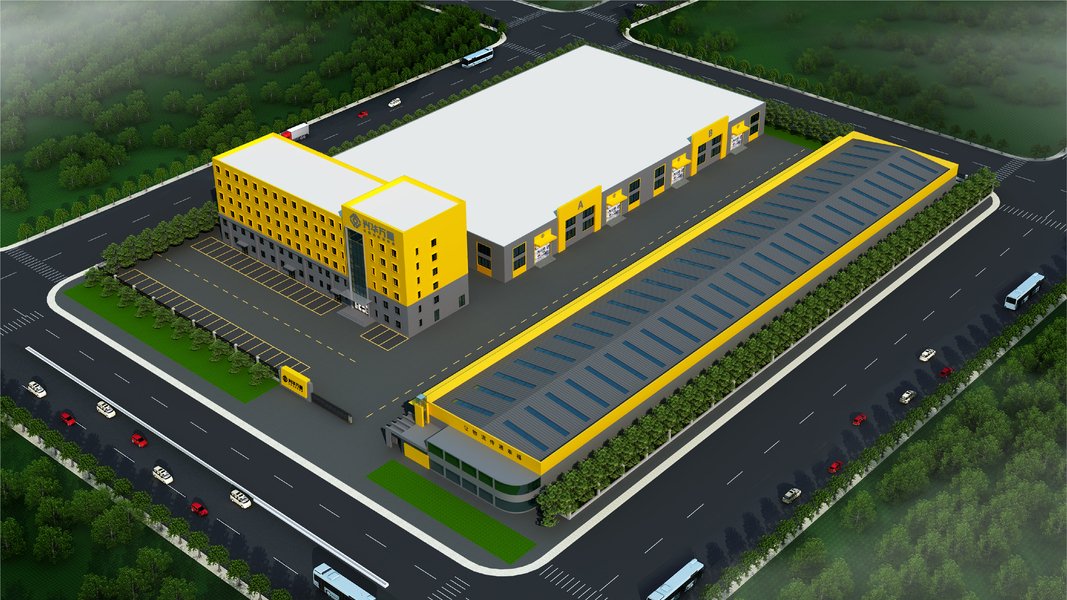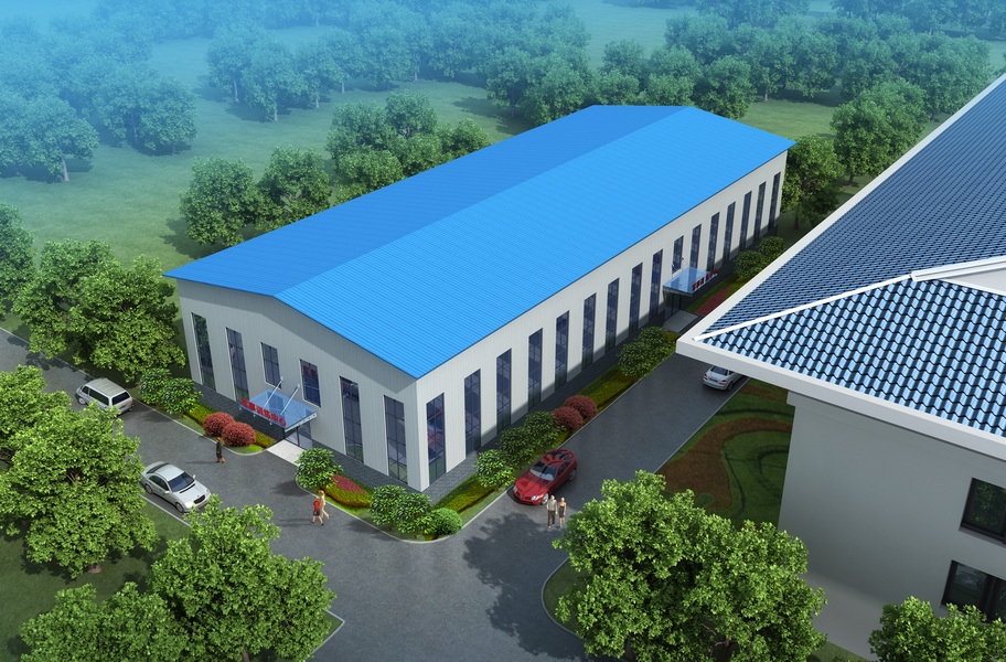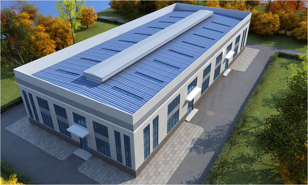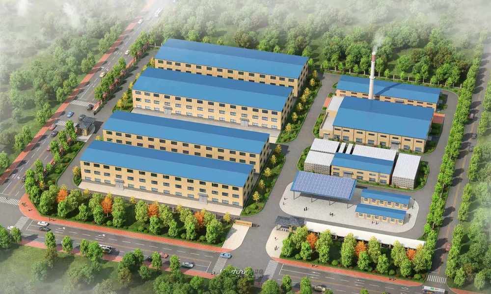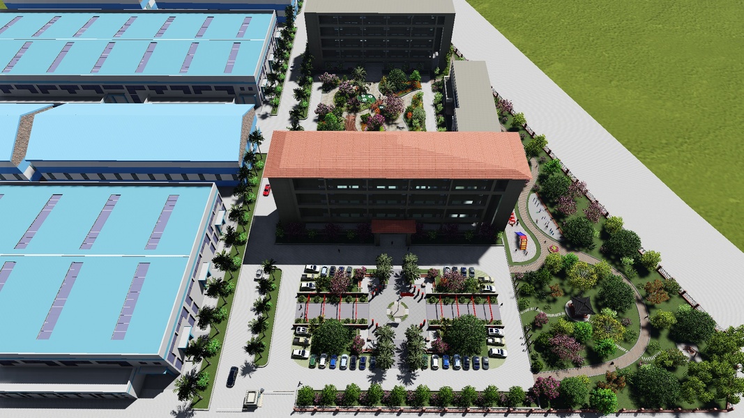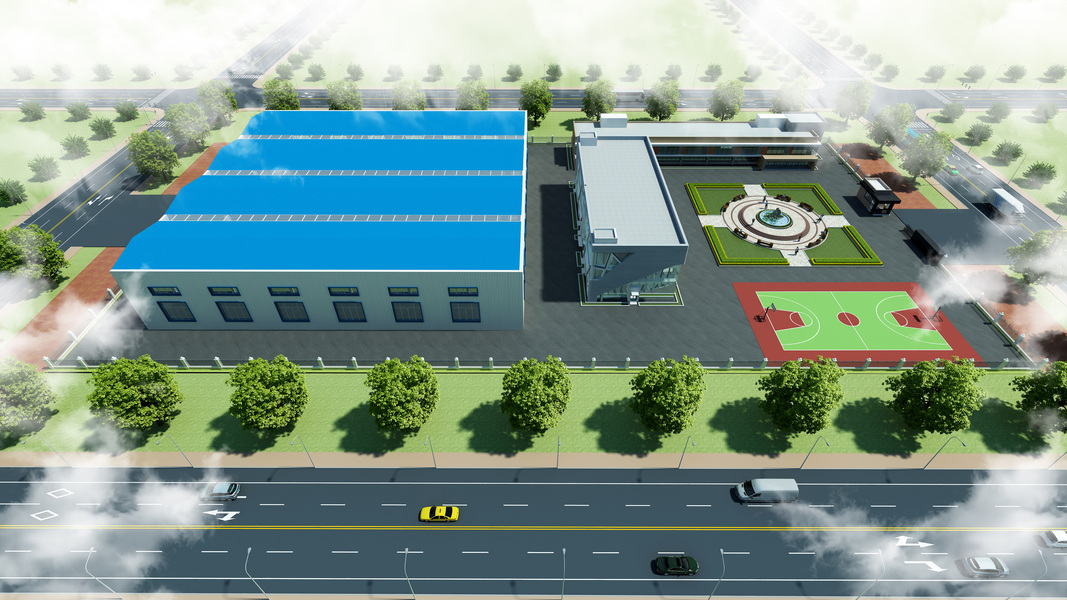 大型室外俯视图厂房,园林景观,光伏。污水处理厂