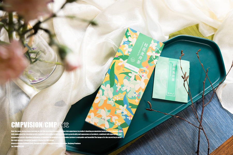 花茶拍摄-桂花龙井茶