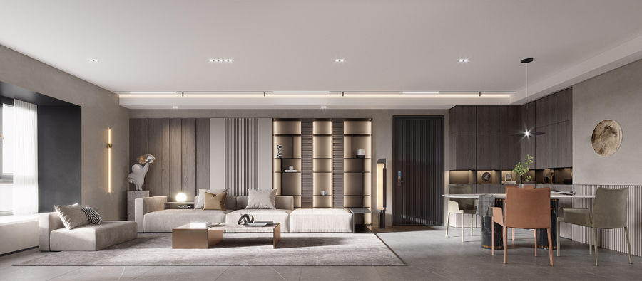 阿召原创设计///暗系轻奢,独特高级暗系客餐厅设计