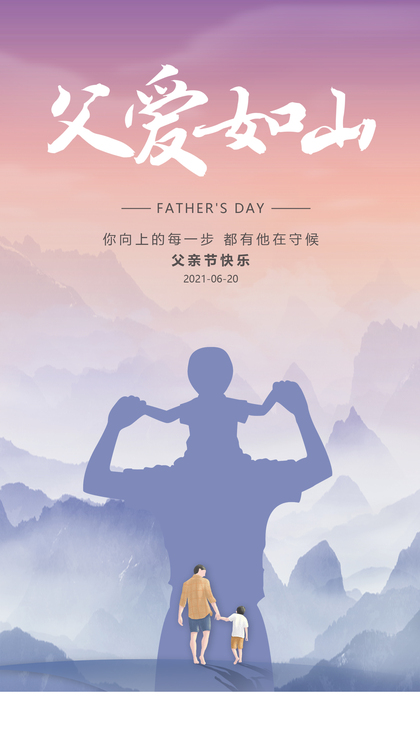 父爱如山插画版父亲节宣传海报父亲节ui手机海报