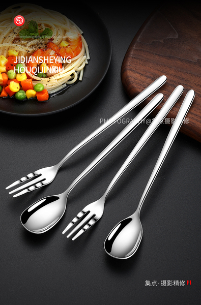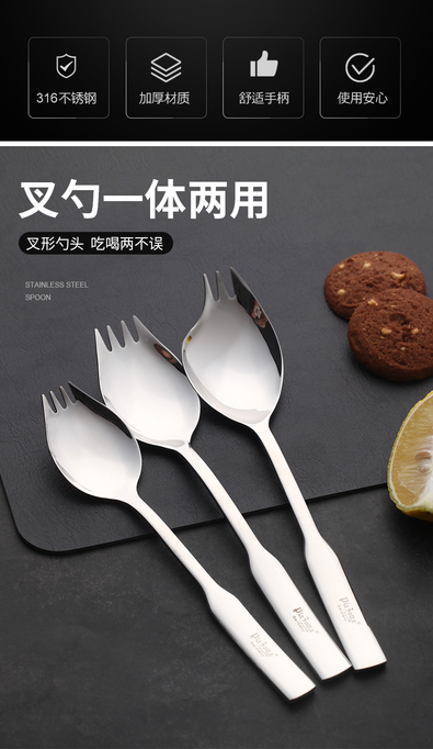 叉勺一体不锈钢勺子沙拉叉两用长柄勺叉水果叉冰淇淋