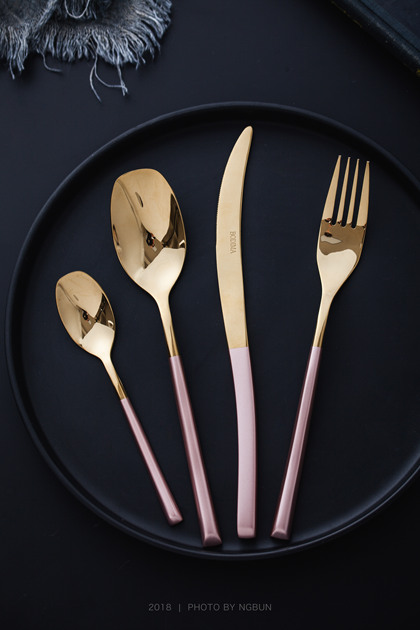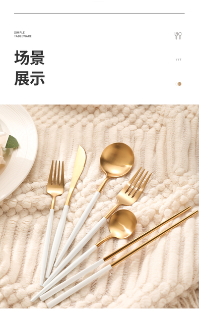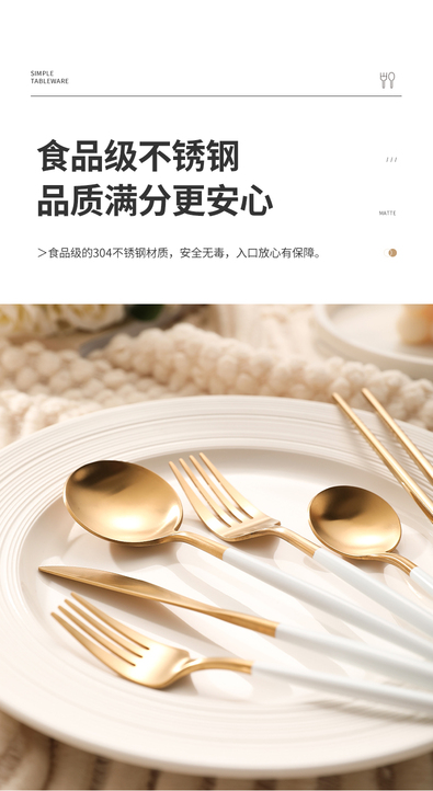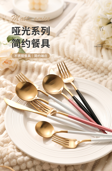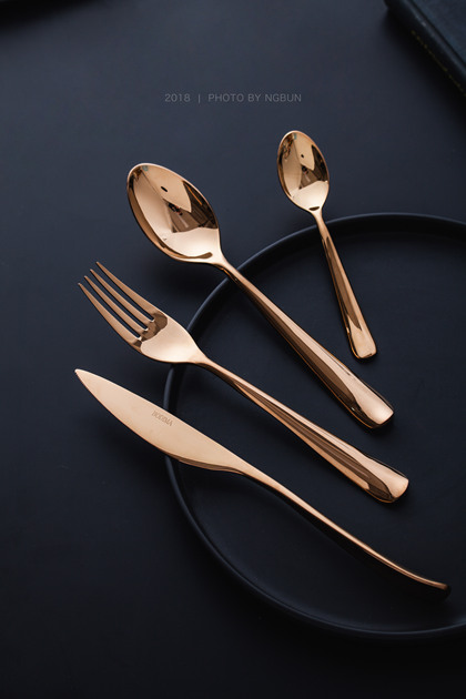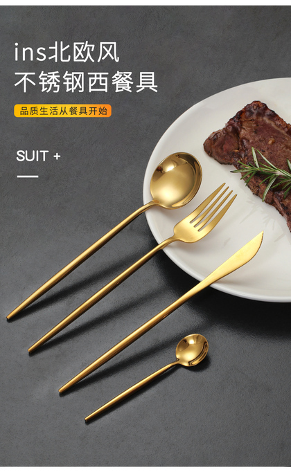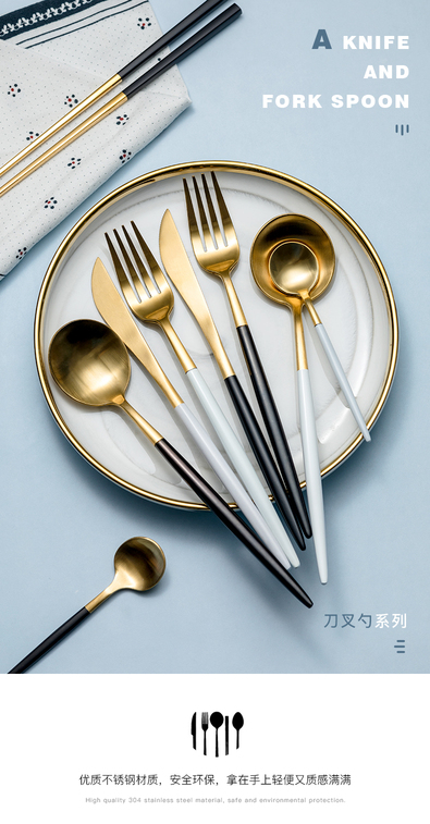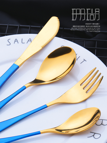 家用304不锈钢金色刀叉套装西餐餐具套装 餐具摄影