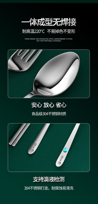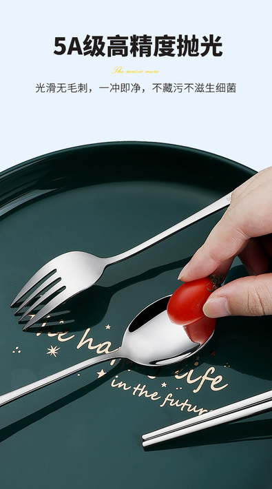 不锈钢儿童勺叉304便携一体餐具叉勺叉子勺学生套装