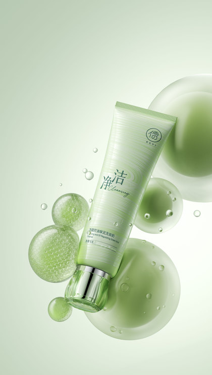 美白洗面奶-护肤品牌视觉设计系列产品C4D建模场景渲染