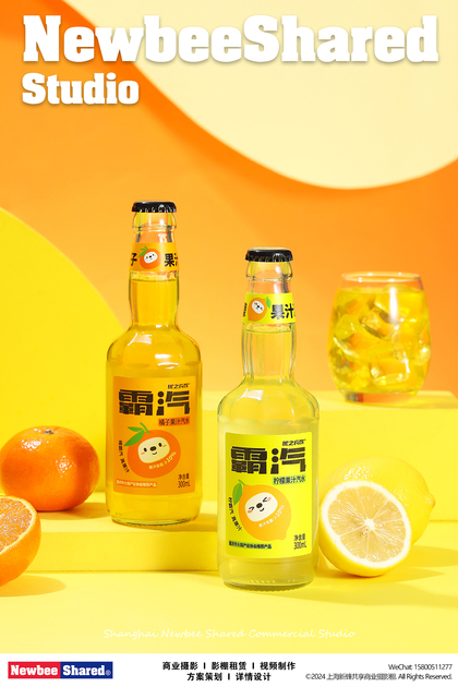 饮料产品摄影|橘子柠檬味汽水拍摄|上海新蜂共享摄影棚