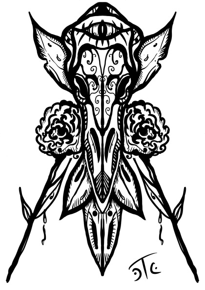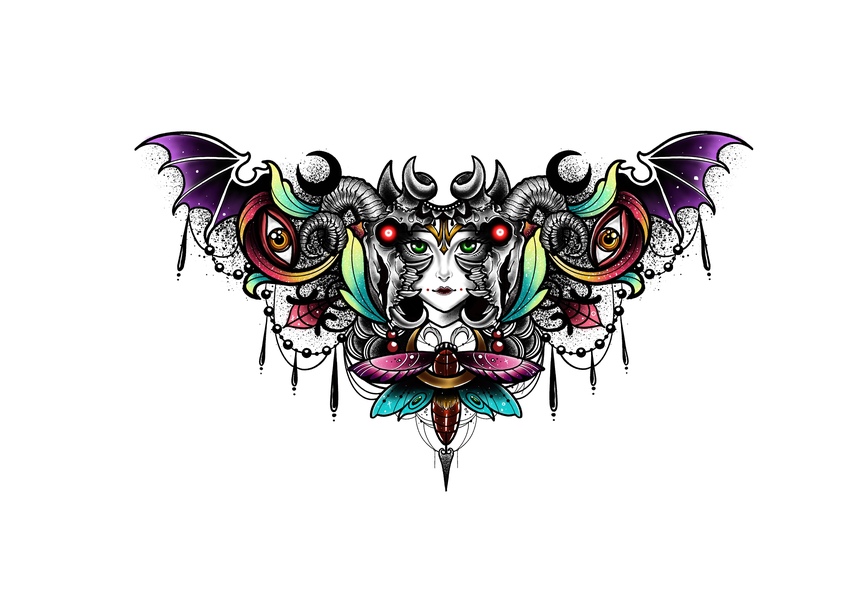 恶魔妖骨少女花胸纹身手稿