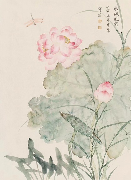 美女画家丰慧没骨花鸟画作品真迹