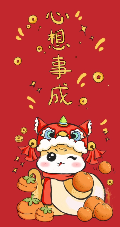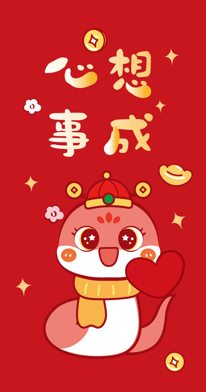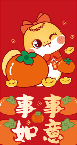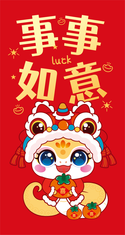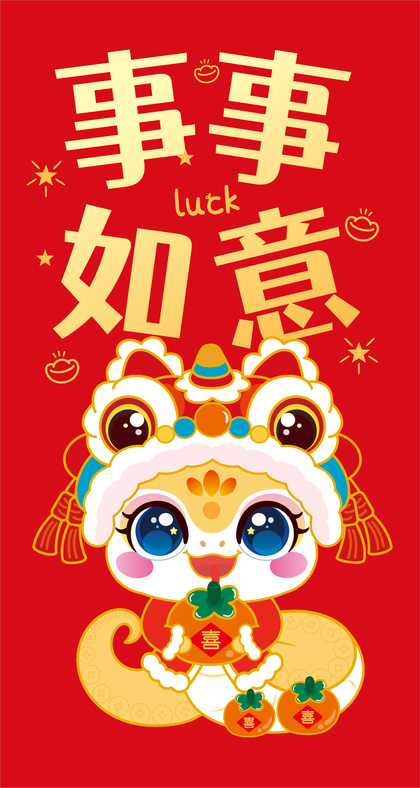 蛇年红包利是封设计原创卡通形象插画新年红包压岁钱