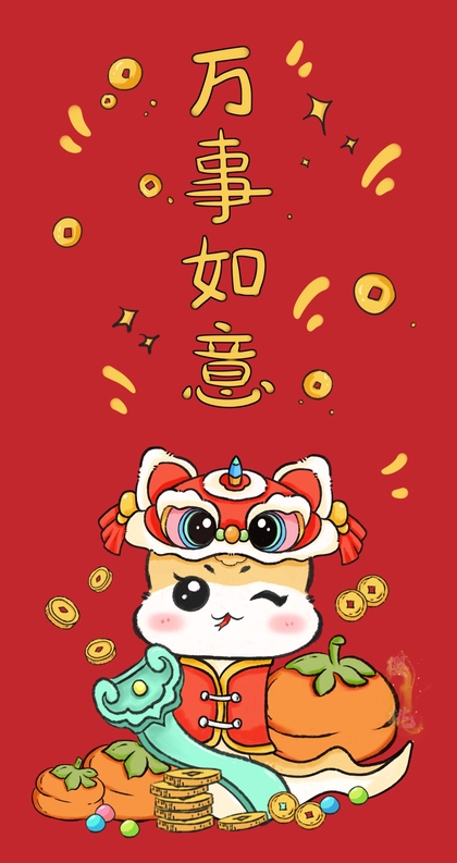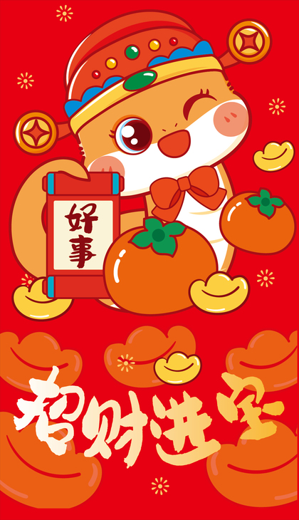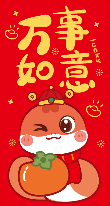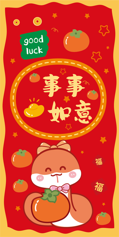蛇年红包福字压岁钱新年快乐插画设计 可合作