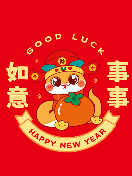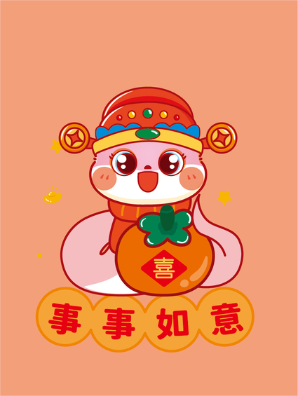 蛇年卡通插画吉祥物IP形象设计喜庆新年红包设计地垫