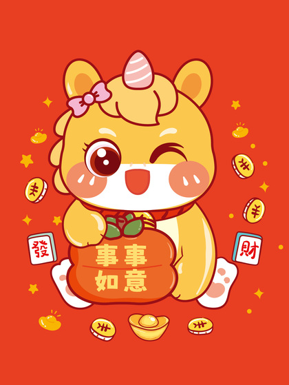 可爱的小马宝宝卡通可爱招财进宝喜庆插画