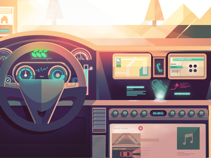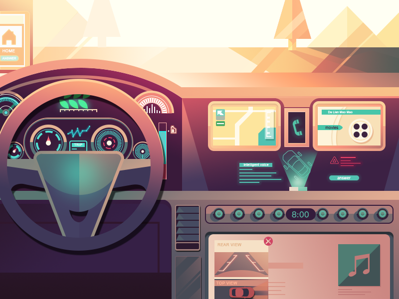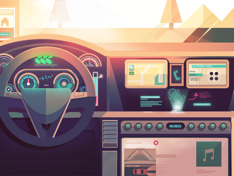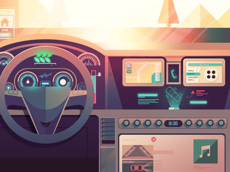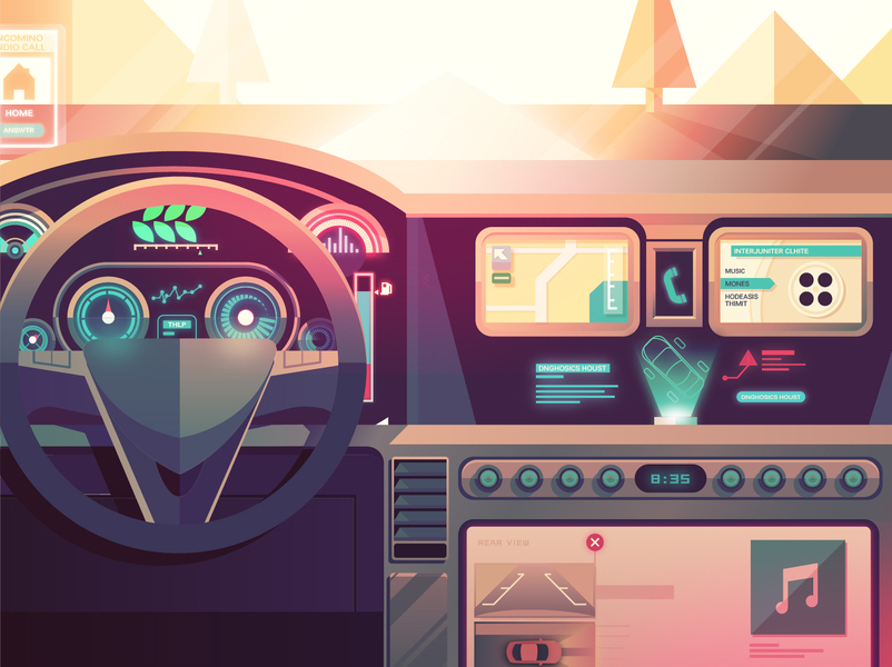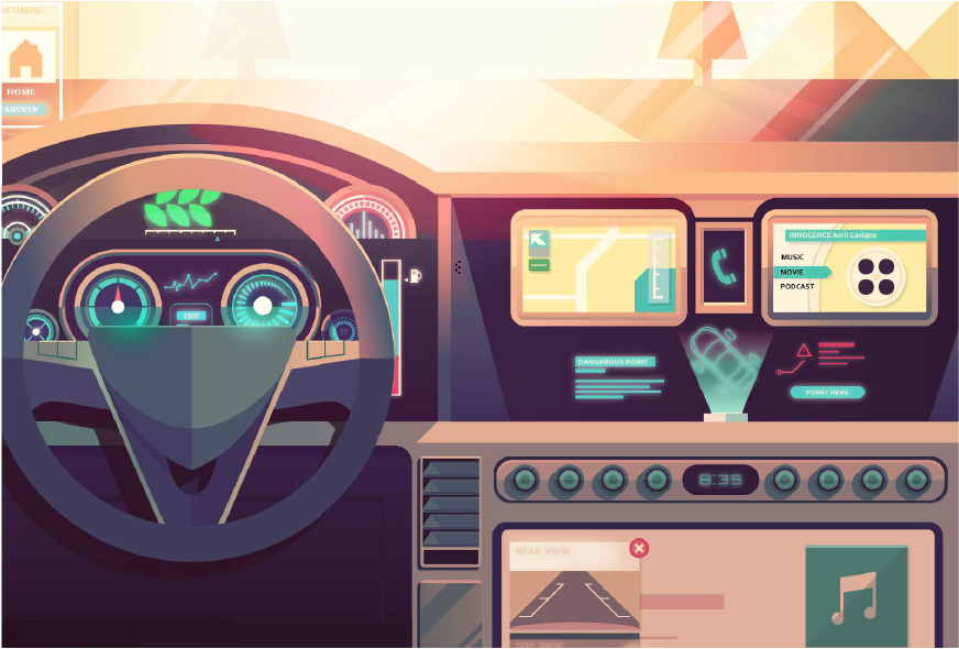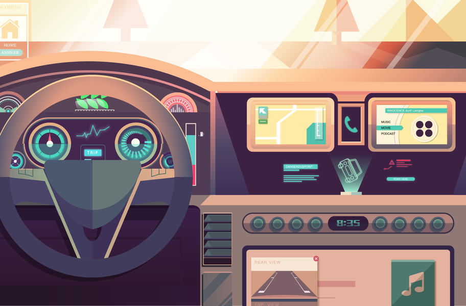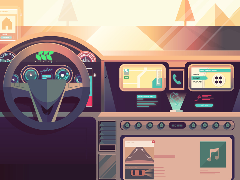 高科技汽车内部插画