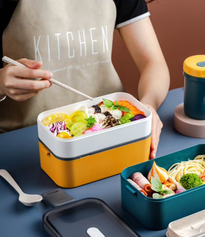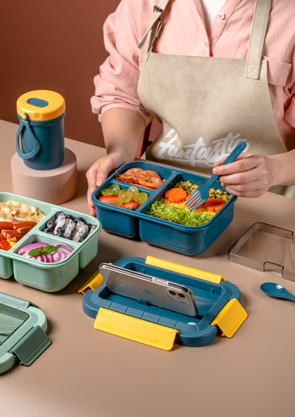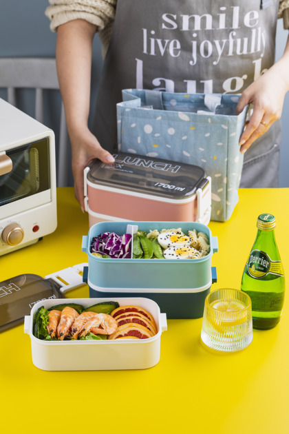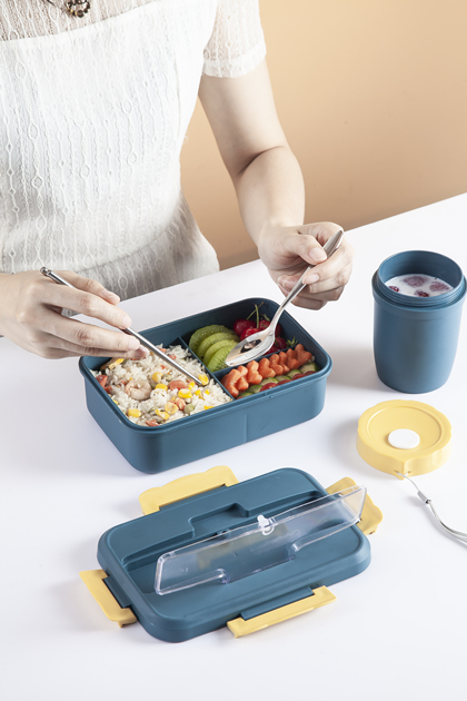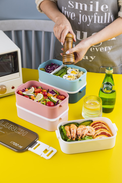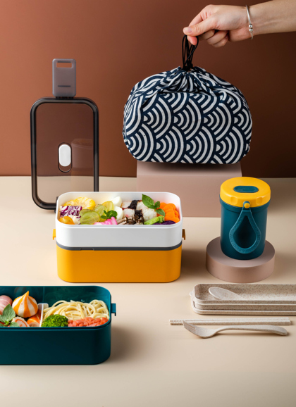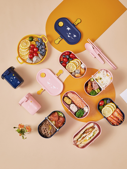 日常餐具拍摄 电商上班族便携便当盒塑料撞色饭盒