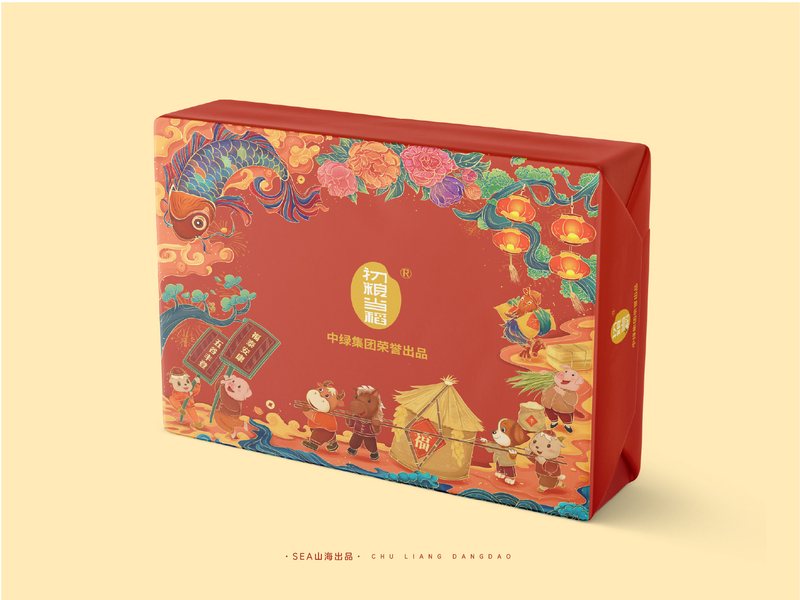 中绿集团初粮当道品牌新年礼品插画包装设计