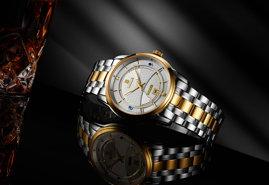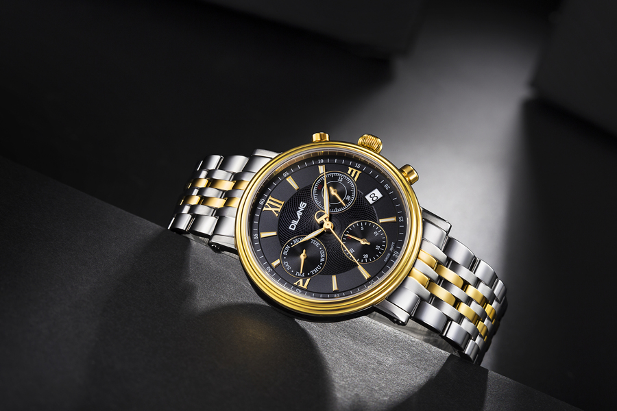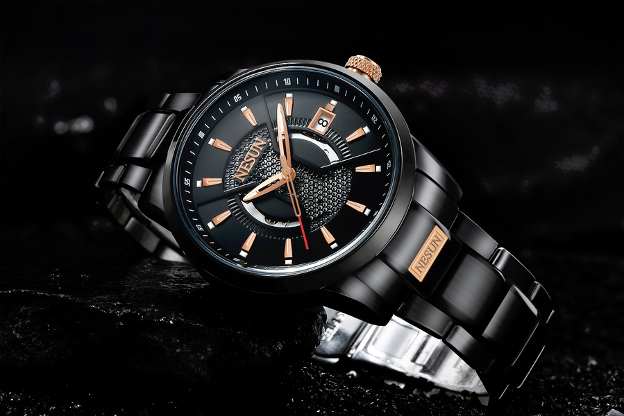 手表摄影/NESUN尼尚精钢防水夜光双日历男士商务手表