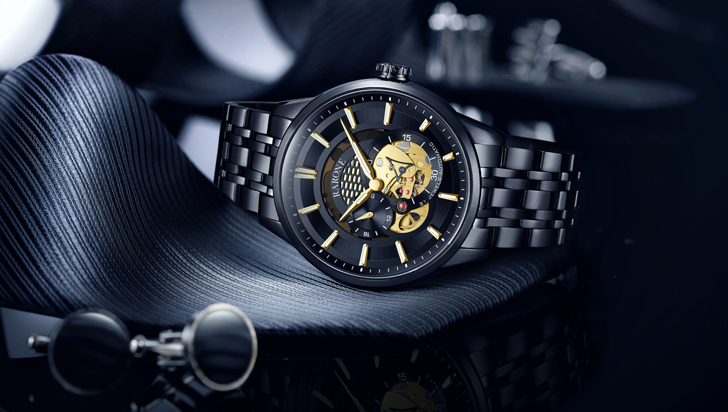 手表摄影/NESUN尼尚机械表镂空网纹夜光防水男表