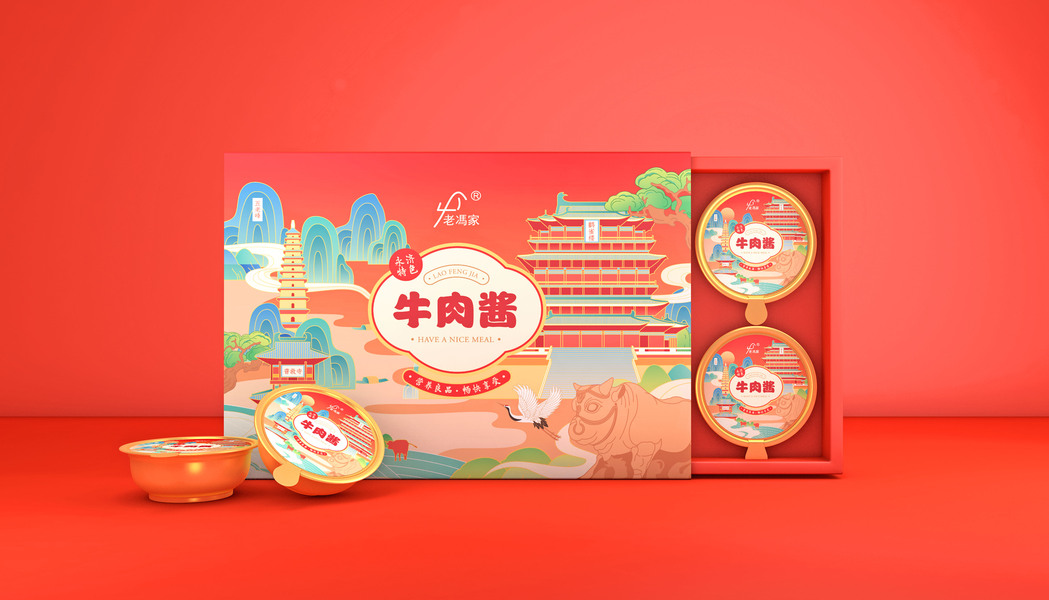 橘猫x老冯家酱料食品包装设计国风手绘插画伴手礼