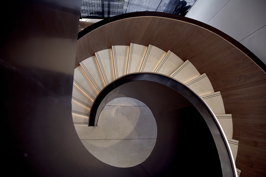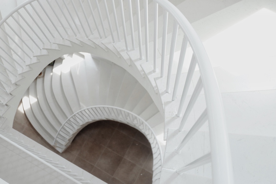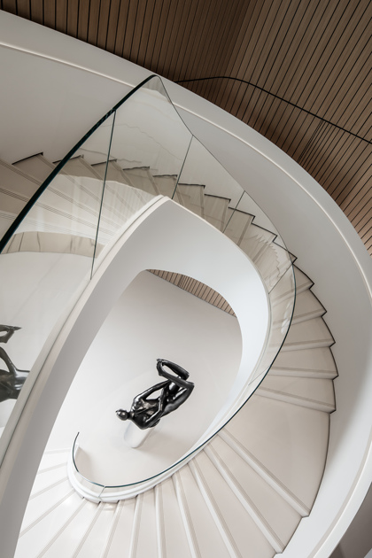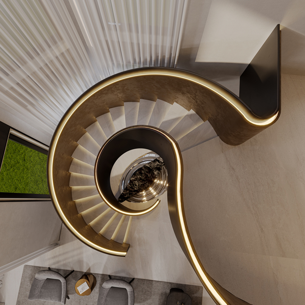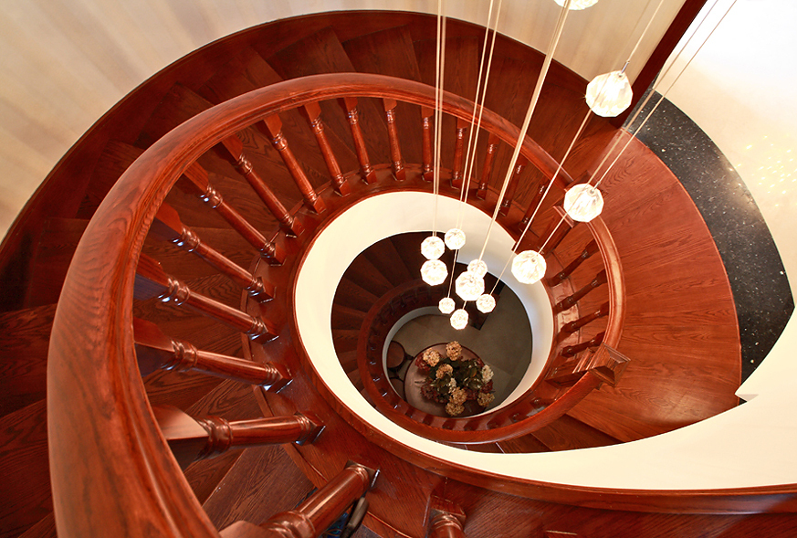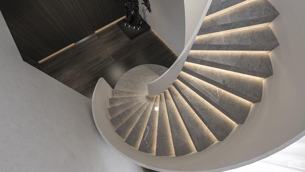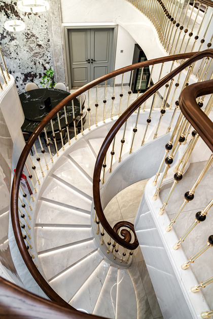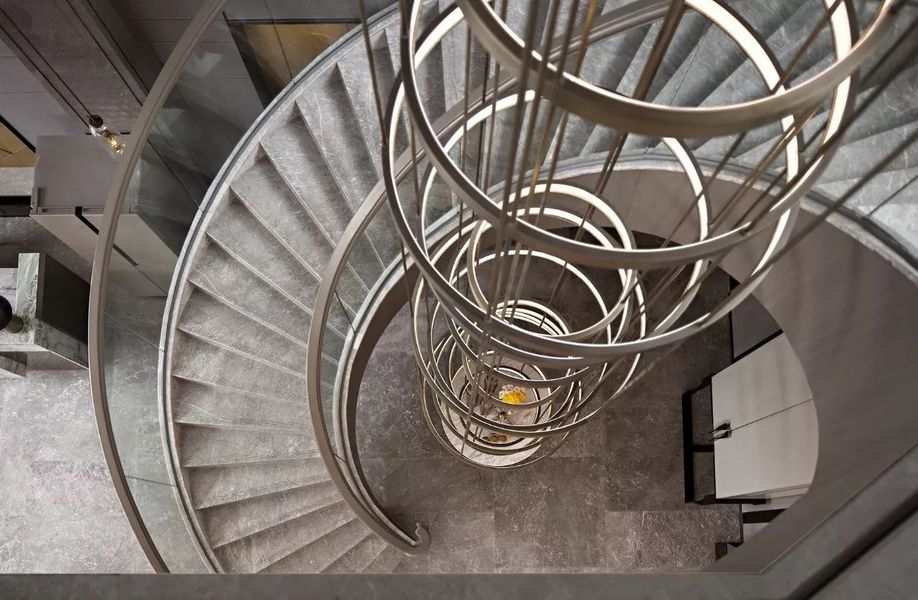 现代简约楼梯玻璃护栏酒店别墅弧形旋转扶手