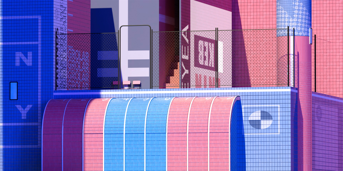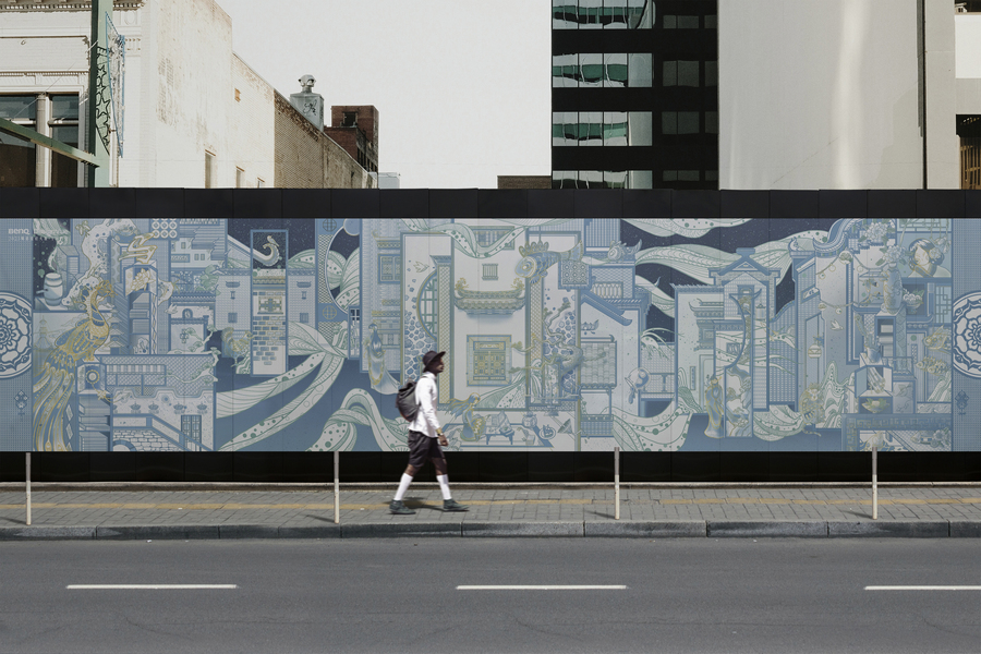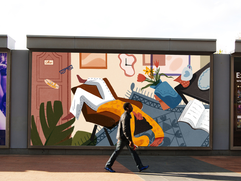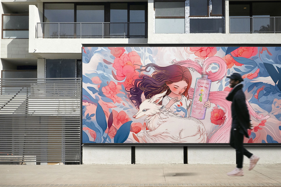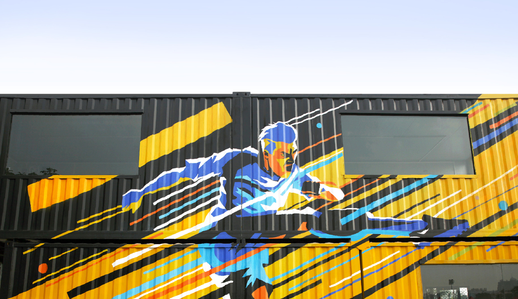 蓝色格调小区架空层空间文化彩绘,架空层主题手绘画