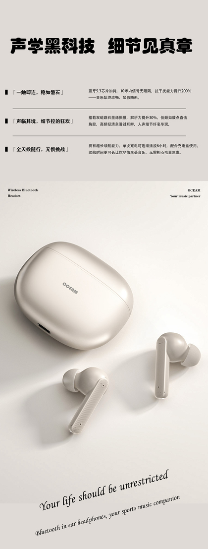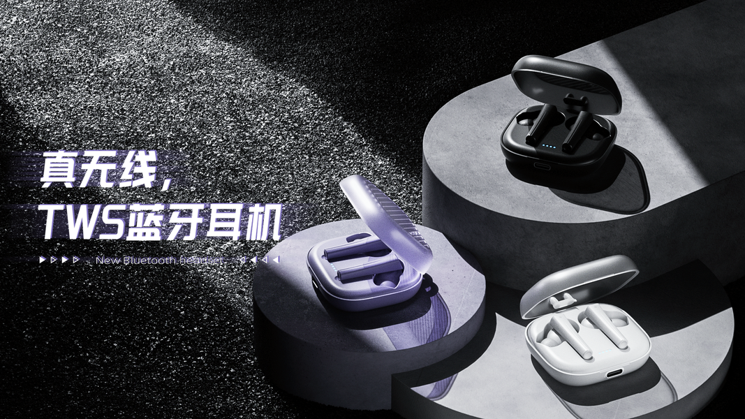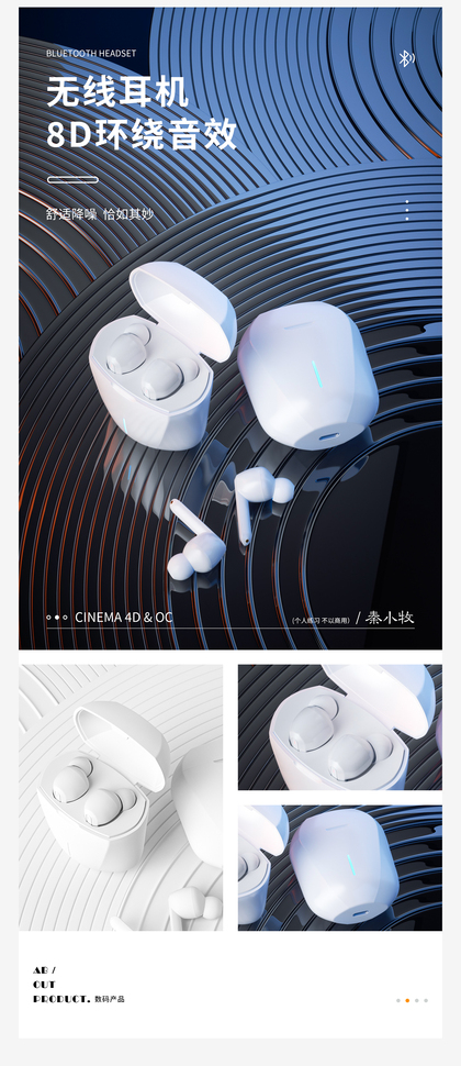 蓝牙耳机+场景搭建渲染+排版