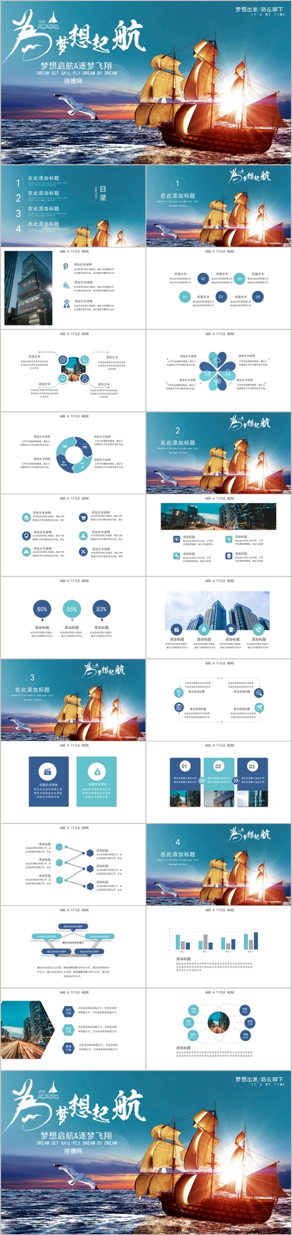 为梦想起航商务励志主题培训工作总结通用PPT模板