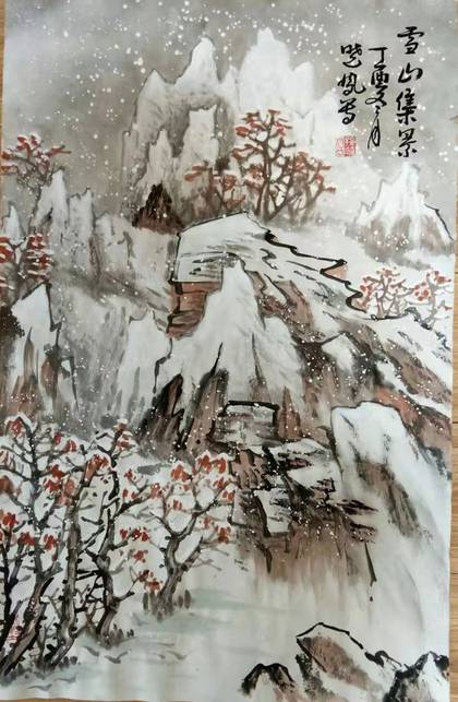 雪景无需再画,可我忙碌两天。纯手绘家装背景墙-雪后的美景
