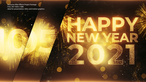 AE模板 | 简洁金色烟花新年倒计时标题开幕片头