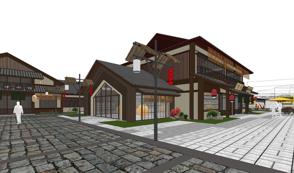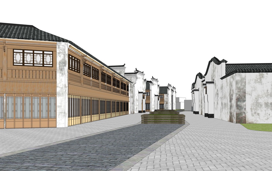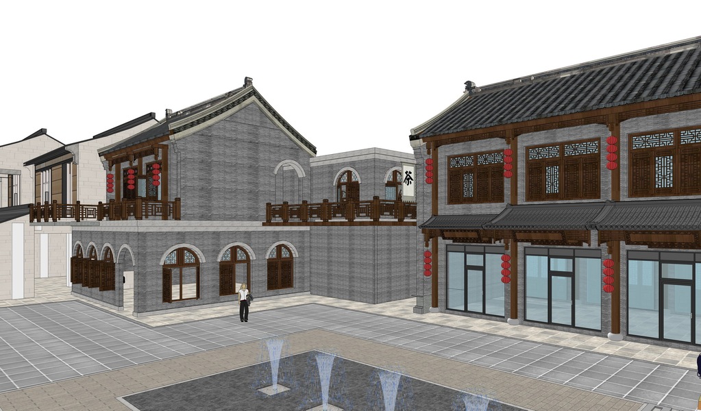 中式商业街SU模型下载