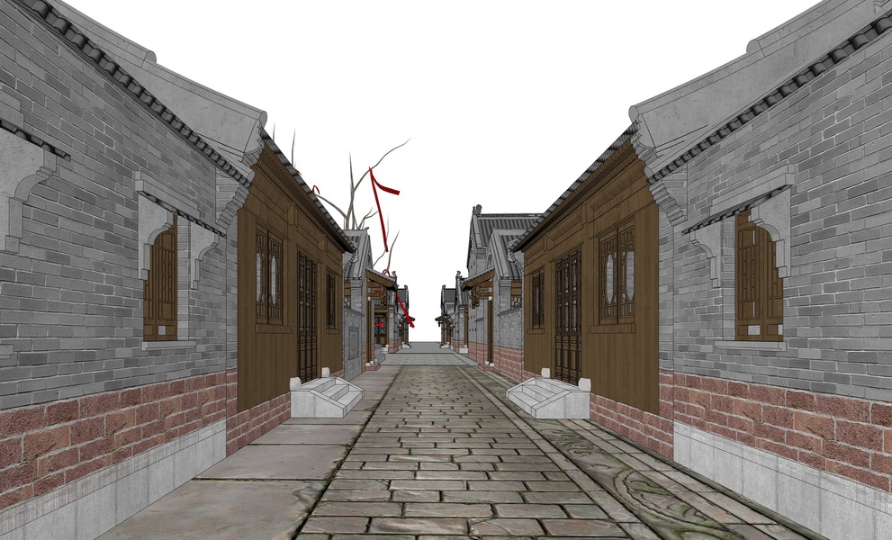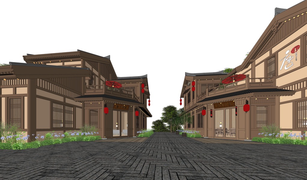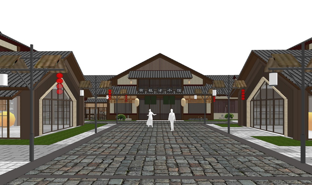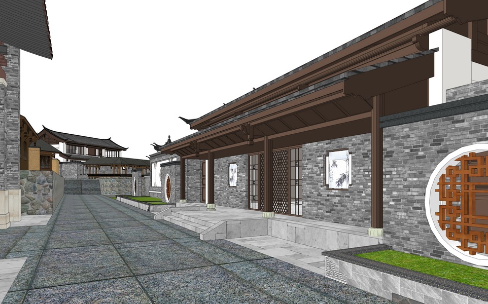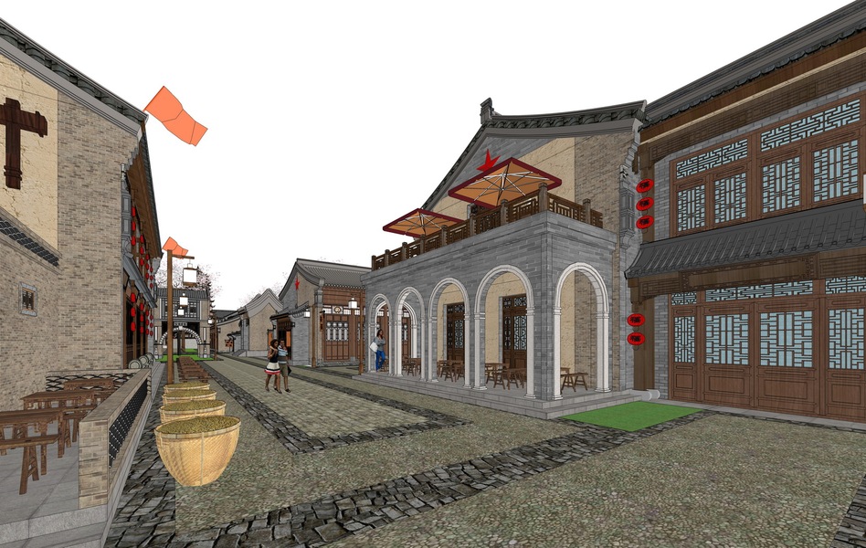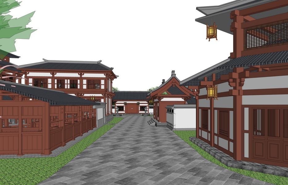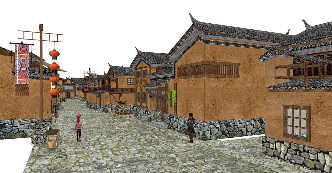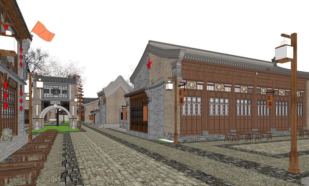 中式商业街巷道景观SU模型下载