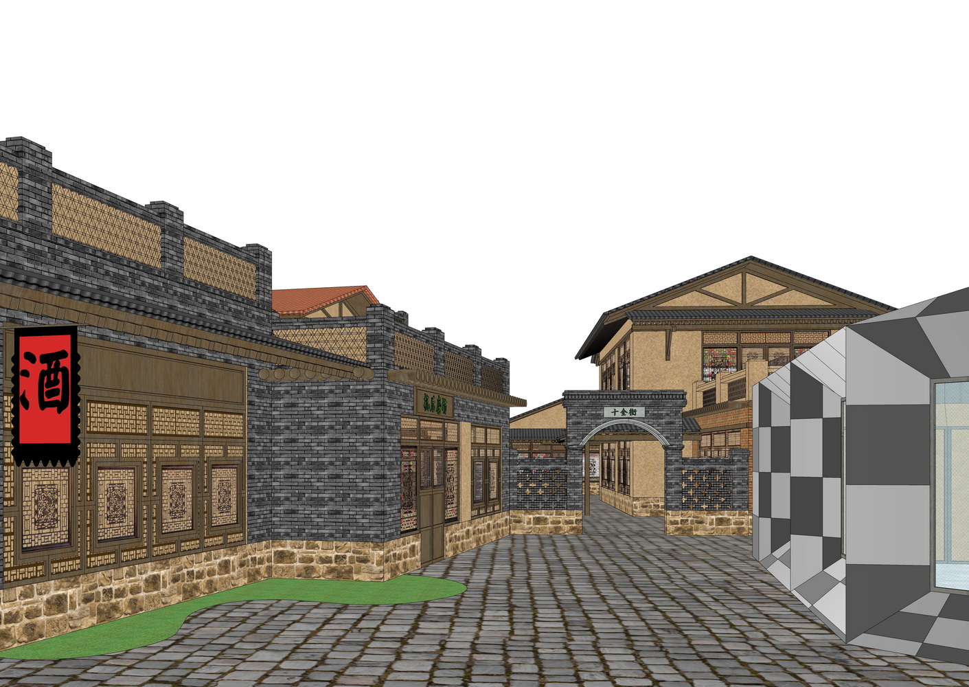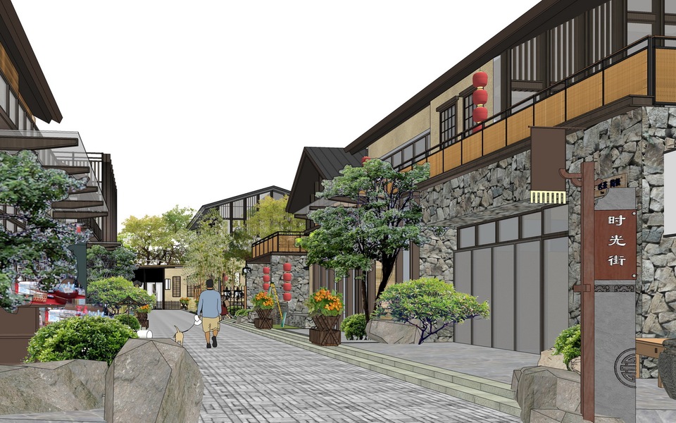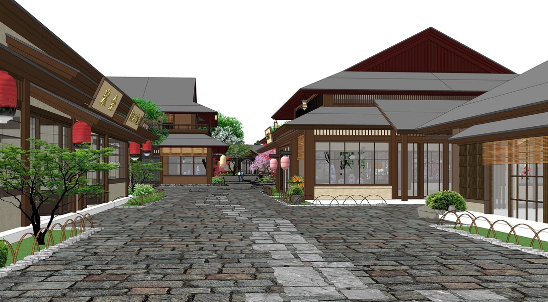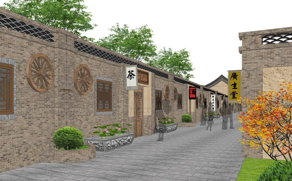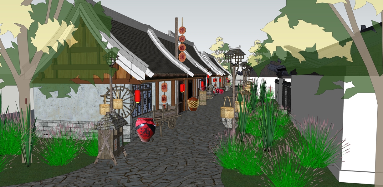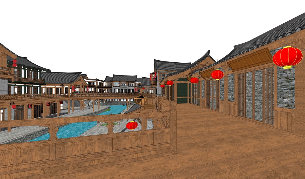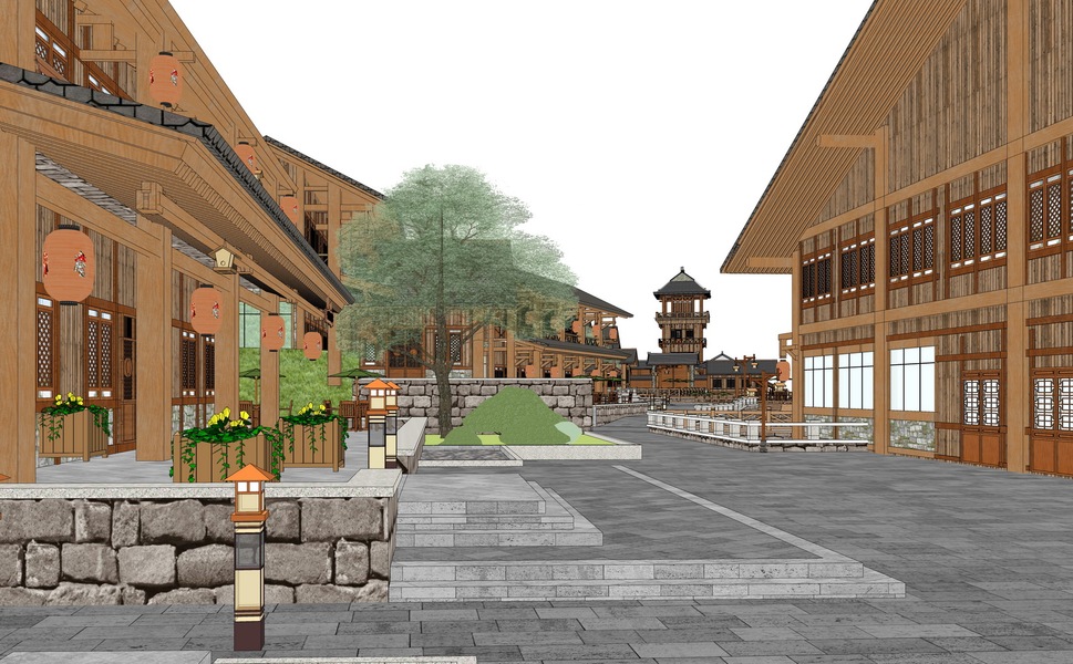 中式商业街巷道景观SU模型下载