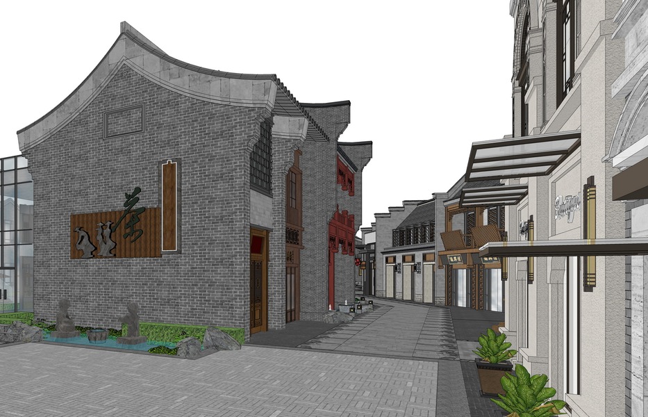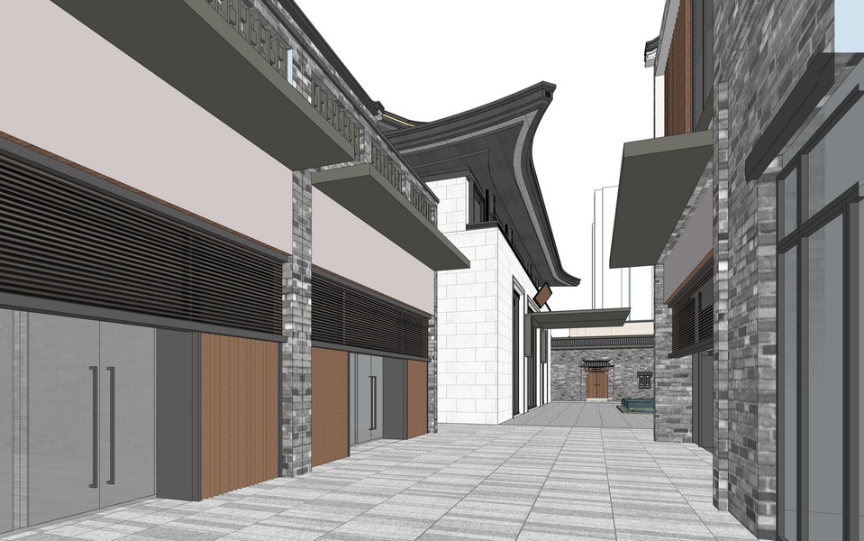 双巷子新中式商业街SU模型下载