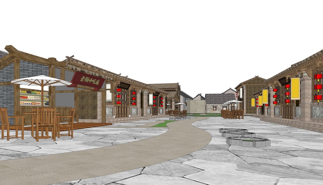 宋风古镇中式商业街SU模型下载
