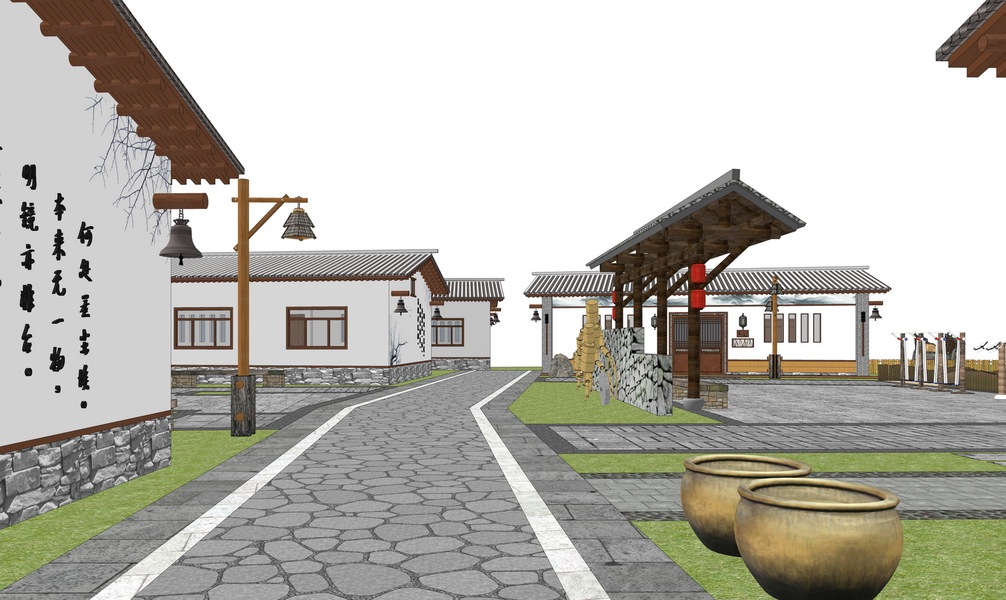 新中式民俗文化园SU模型下载