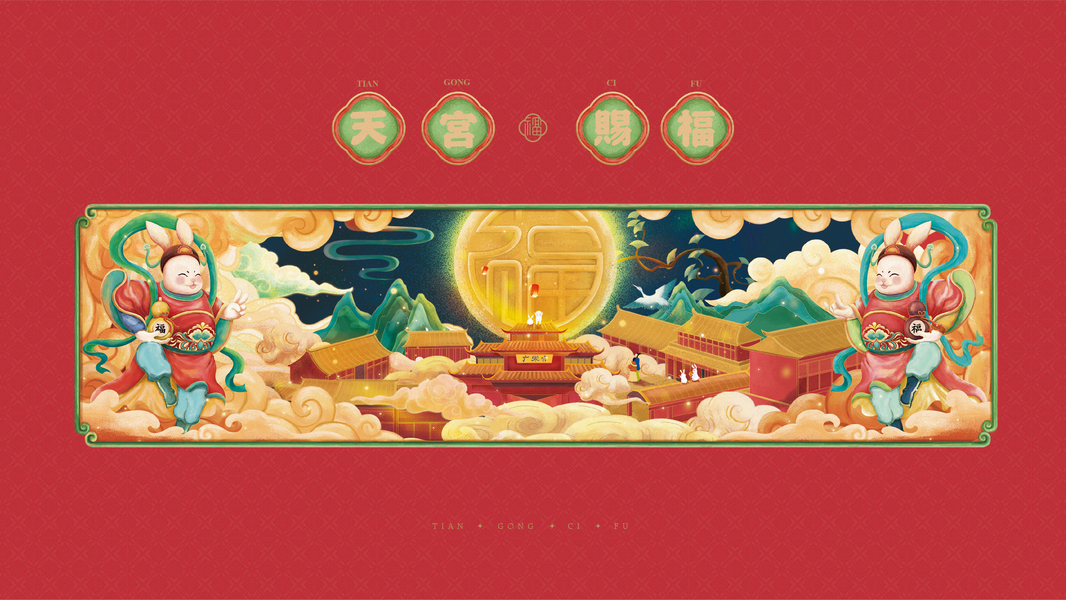 《福兔迎春辞旧岁》兔年生肖IP主题国风系列插画