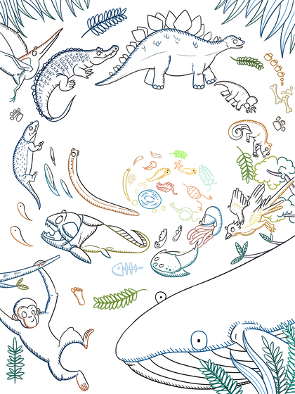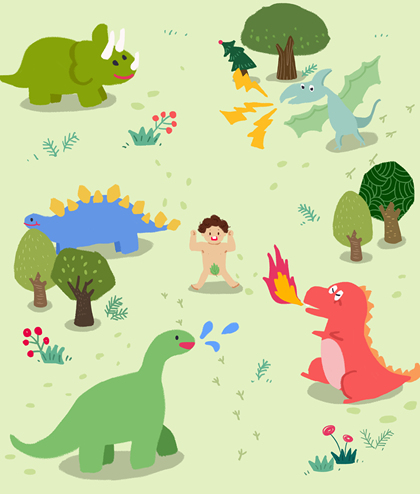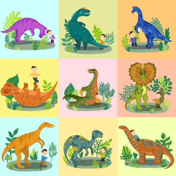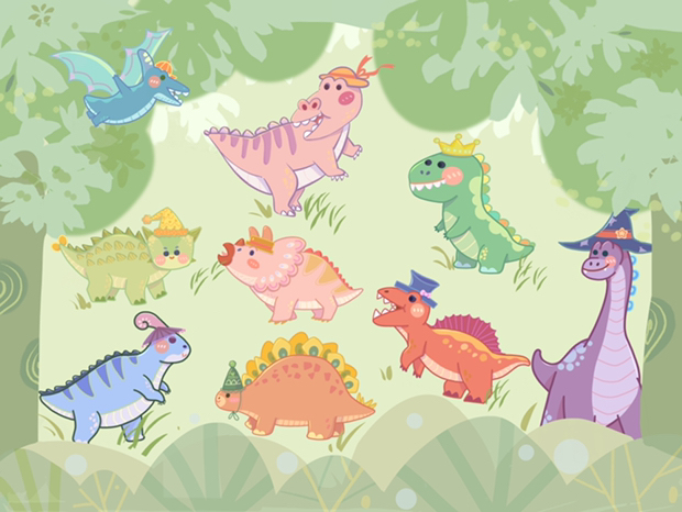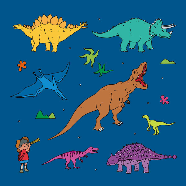 黑白手账素材-画恐龙过龙年~-简笔画动物