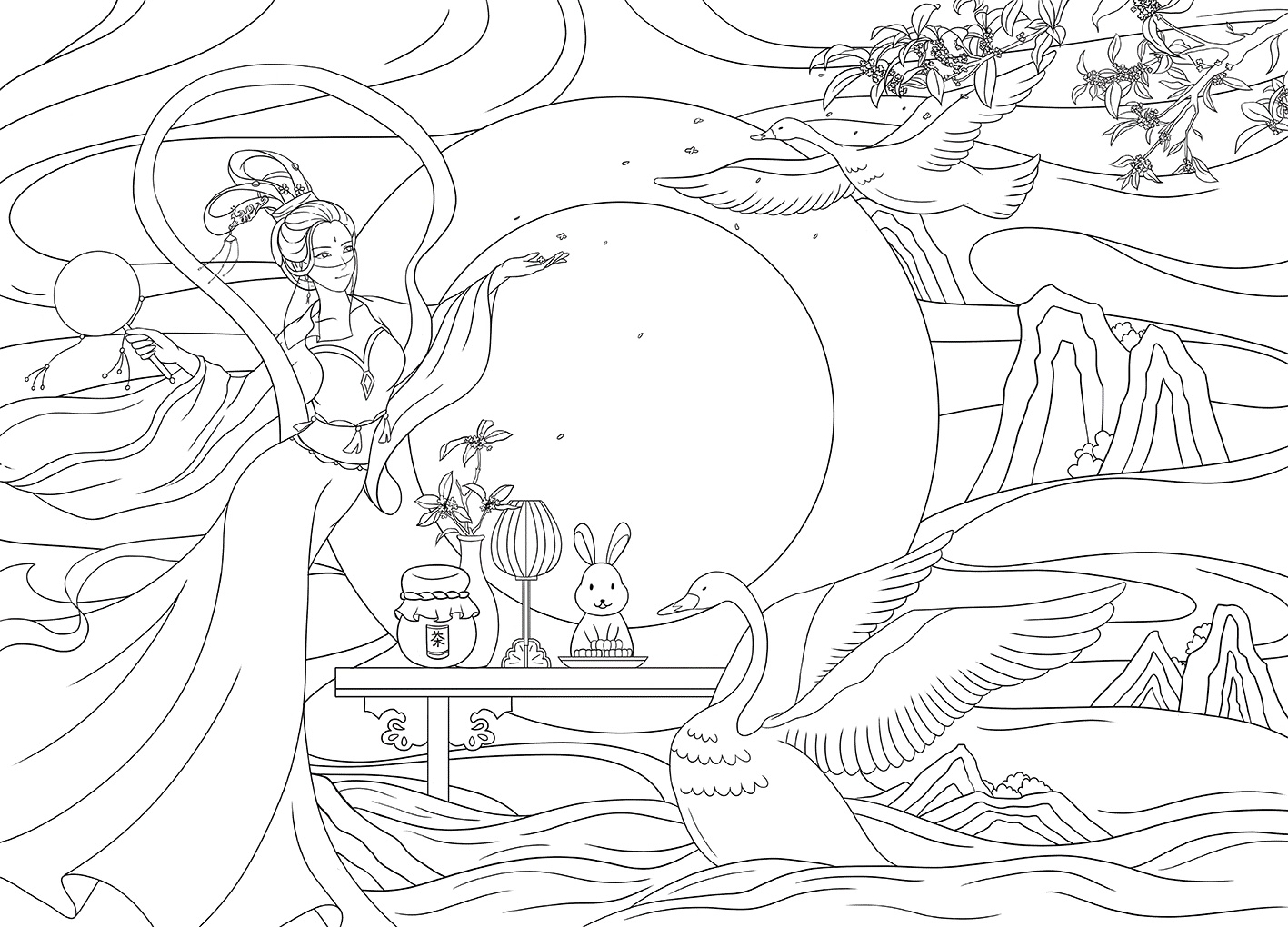 尝鹅月饼 | 中秋包装 | 中国风插画 | 嫦娥与鹅