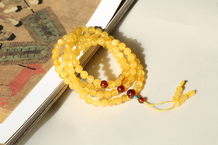 珠宝产品蜜蜡手串108颗拍摄场景图