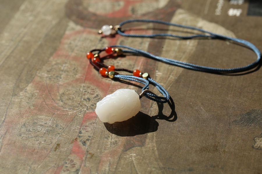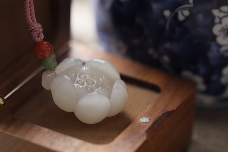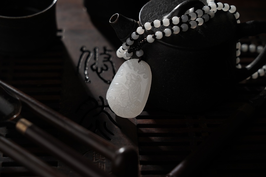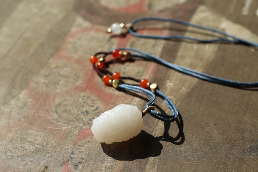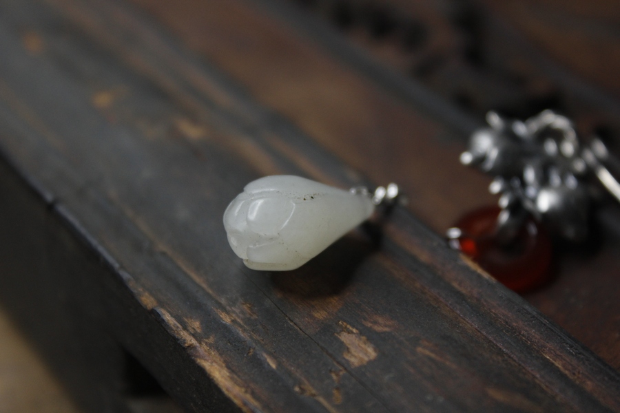 陌上诗 | 产品摄影 | 【锦瑟】纯银石榴福桃和田玉耳坠