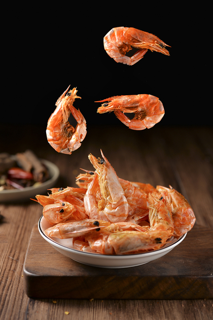 即食大号海鲜干货对虾干海虾干碳烤大虾干场景拍摄