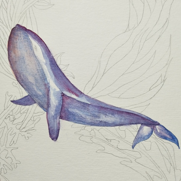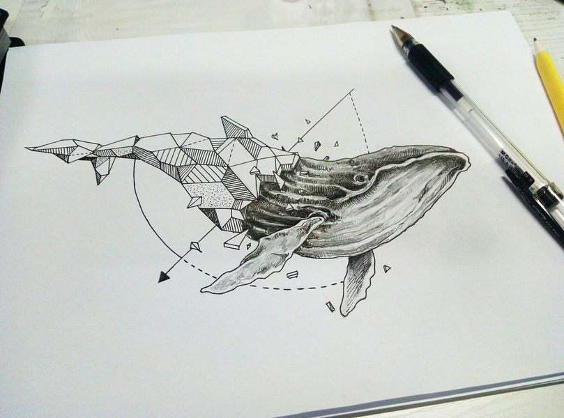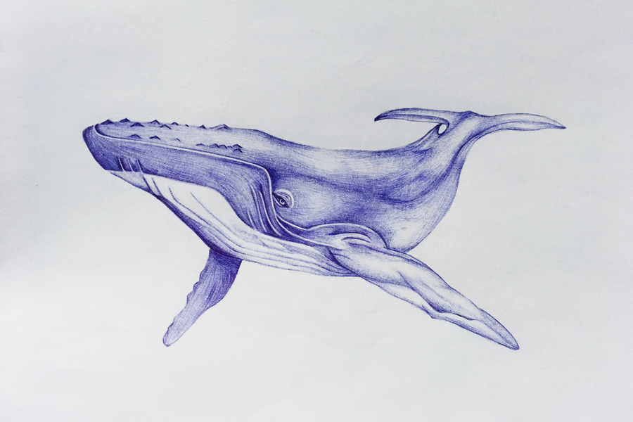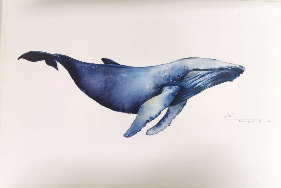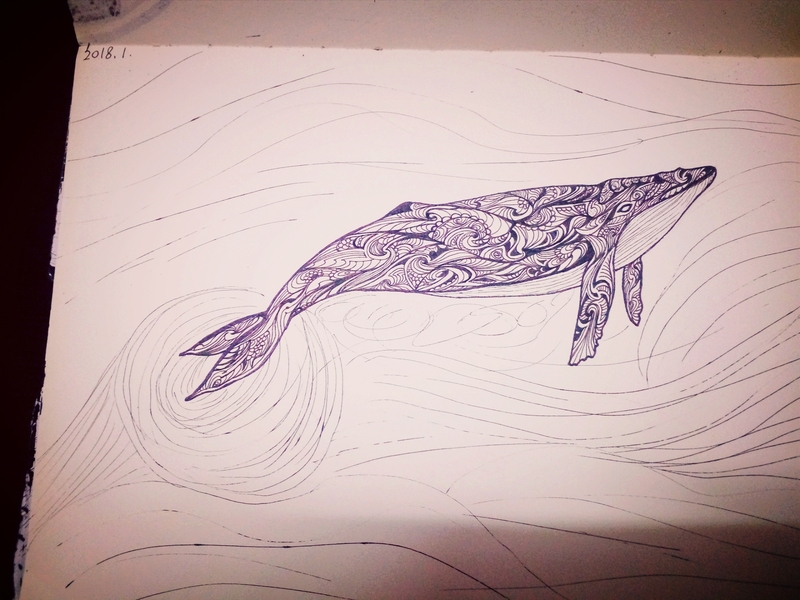 鲸鱼大鱼意境手绘梦幻山水意境想象意象飞翔天空创境