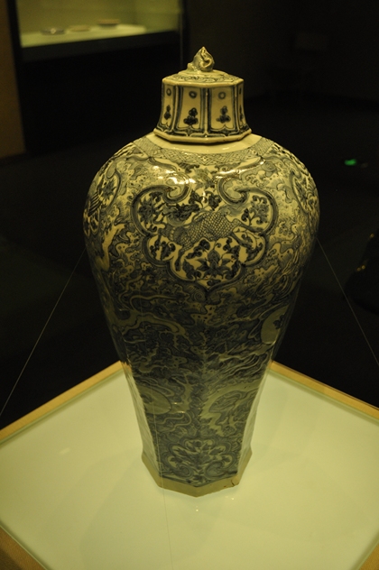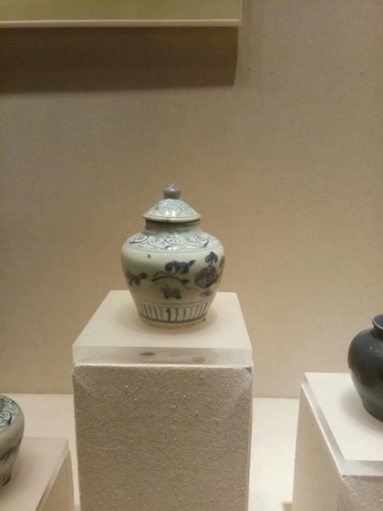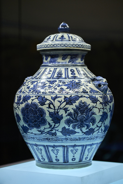 汤和墓元青花缠枝牡丹纹兽耳瓷盖罐