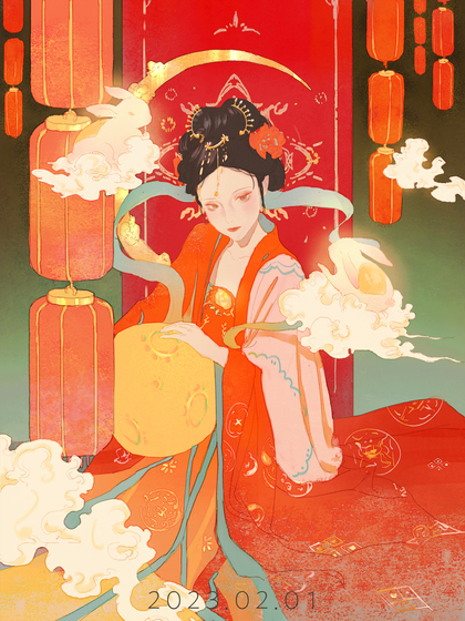 中秋节/国潮海报花好月圆/新锐潮流插画