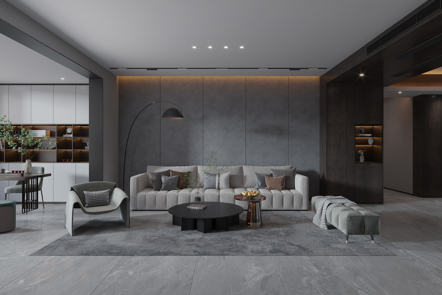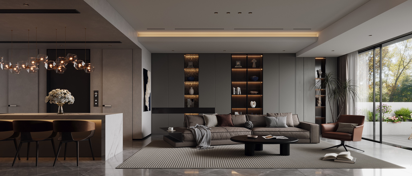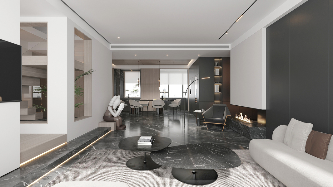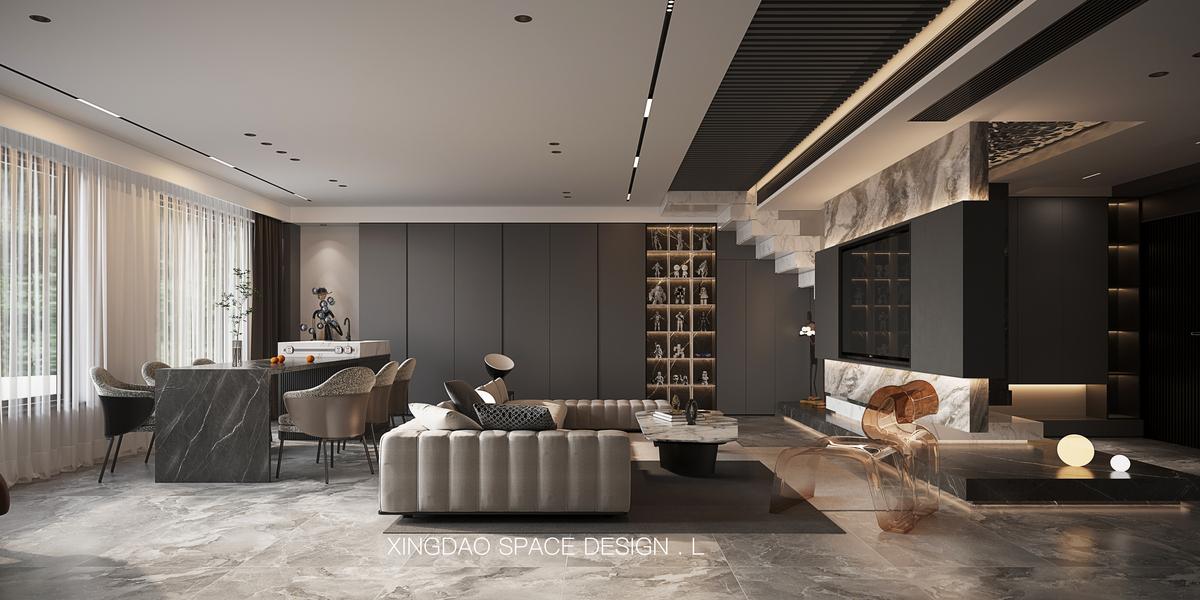 阿召原创设计///暗系轻奢,独特高级暗系客餐厅设计