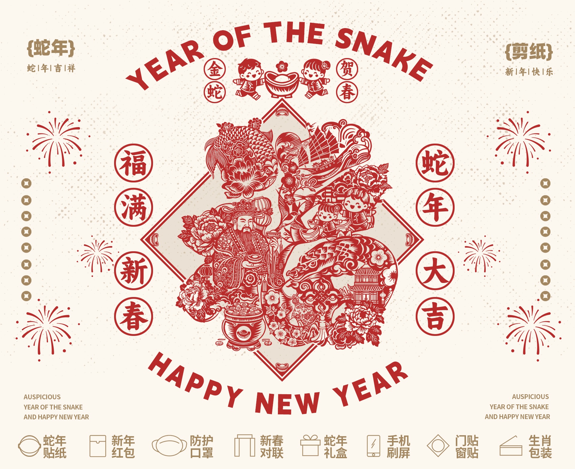 2025蛇年剪纸 | 福禄寿喜财字绘插画