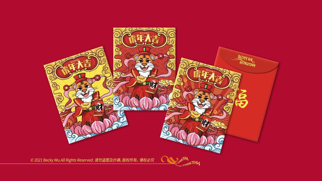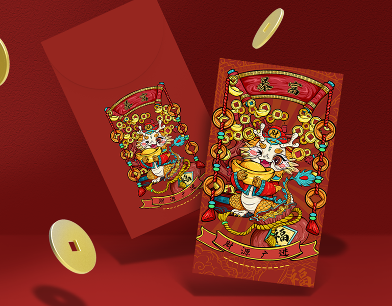 虎年红包设计国潮红包插画财神新年红包新年文创利是封