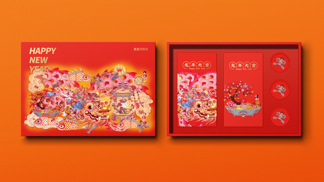 2024新春新年龙年国潮插画设计