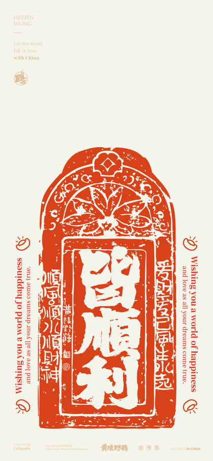 白墨研字|黄陵野鹤令牌拓印风系列好运内容书法设计