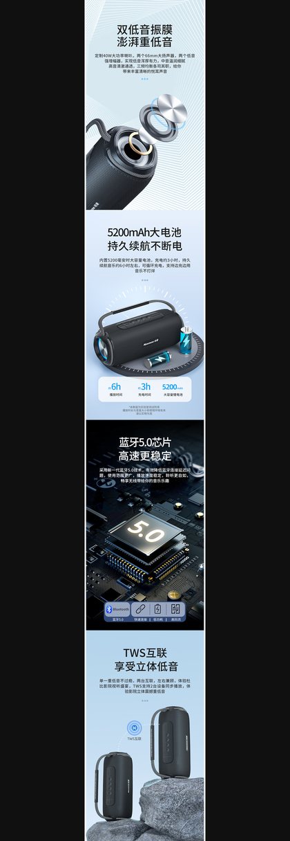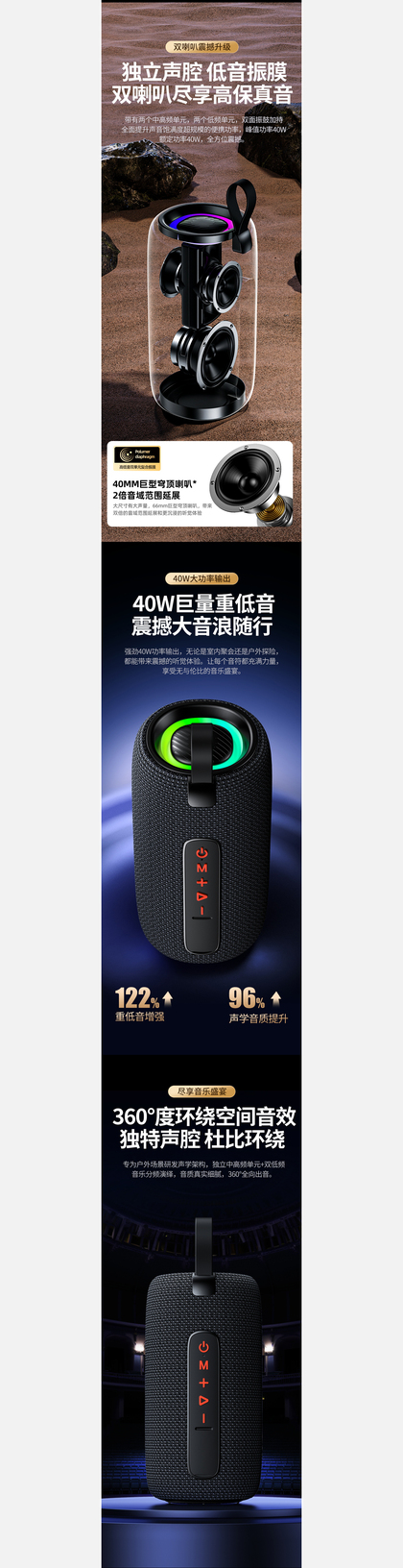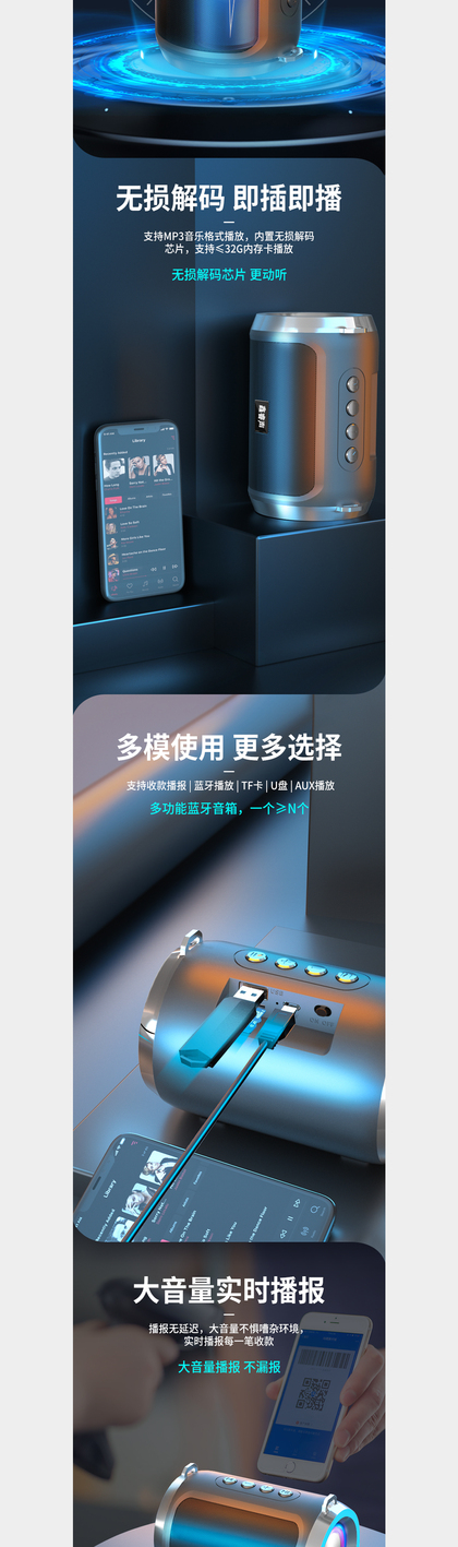 胜已【鑫睿声-蓝牙音箱详情页设计-360°立体环听盛宴】