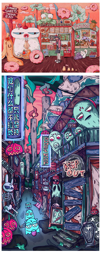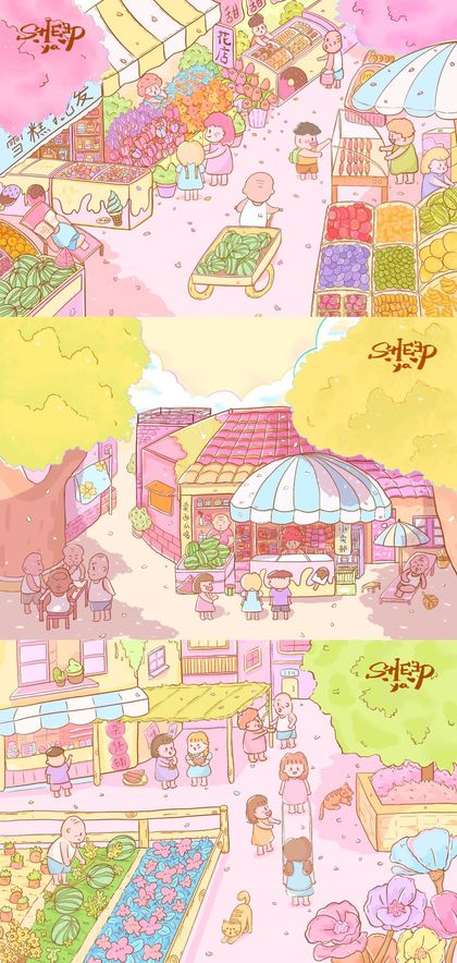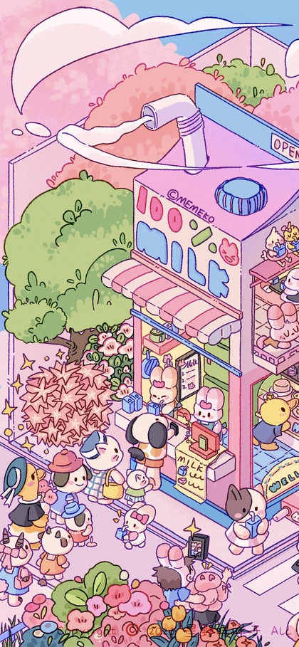 原创插画|粉色街角的牛奶店🐰