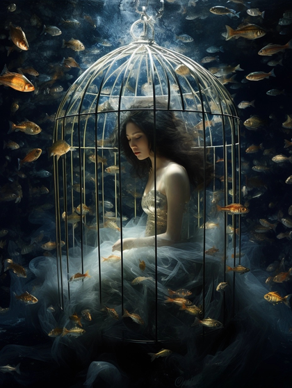 AI绘画|消失的她,海底的她